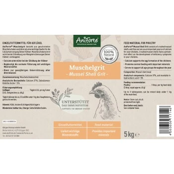 AniForte® Muschelgrit besteht aus geschroteten Muschelschalen und dient somit als eine wichtige Quelle für die Calciumversorgung Deiner Hühner. Muschelschalenschrot wirkt bei der Entstehung von Mangelerscheinungen Deiner Hühner vorbeugend.