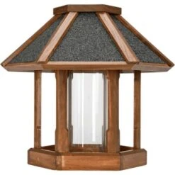 Dank der integrierten Plexiglasröhre bleibt das Futter vor äußeren Witterungseinflüssen geschützt; zudem bietet der Dachüberstand deinen gefiederten Freunden einen trockenen Sitzplatz.