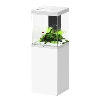 Die besondere Höhe bietet viel Raum für vielfältige Gestaltungsmöglichkeiten. Das Aquarium ist durch das minimalistische Design mit klaren Linien ein echter Blickfang. Die moderne Rahmenabdeckung aus Aluminium bietet durch die Fütterungsklappe einen einfachen Zugang zum Aquarium. Inklusive EASY LED 2.0 Beleuchtung, Innenfiltersystem und passendem Unterschrank mit Stauraum für Ihr Aquarienzubehör