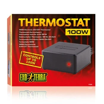 Mit dem elektronischen Exo Terra® Thermostat (AN/AUS, 100 W) können Sie ein gutgesteuertes Wärmesystem erzeugen. Es ermöglicht Ihnen, die benötigten Temperaturbedingungen beizubehalten, die denen in einer Wüsten- oder tropischen Umgebung ähneln.
