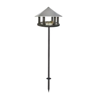 Das runde Vogelhaus von Gardenlife aus gebeizter Fichte bietet mit seinem eleganten Zinkdach Schutz vor Schnee und Regen. Durch die integrierte Schiene, die zum Reinigen, herausnehmbar ist, bleibt das Futter im Haus und kann nicht seitlich herunterfallen.