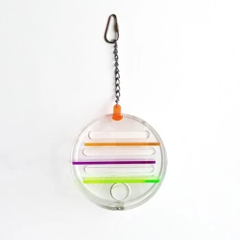 Das Treat Maze Wheel fördert nicht nur die Kreativität, sondern auch die Koordination des Vogels. Durch ein kleines Loch werden Leckereien ins Innere des Rades gesteckt.