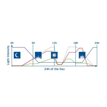 Neben Sonnenauf- und Sonnenuntergängen lassen sich bequem bis zu 16 Beleuchtungsphasen für jeden Tag individuell programmieren. Definieren Sie schnell und einfach, tageszeitabhängig die Lichtstimmungen in Ihrem Aquarium und sorgen Sie mit diesem Farbeffekt für eine einzigartige Atmosphäre in Ihrer Unterwasserwelt.