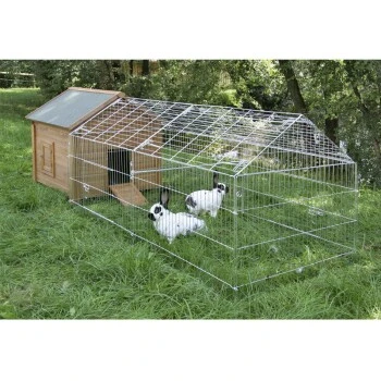 Das Freilaufgehege für große Kaninchen und Hühner lässt sich einfach erweitern.
