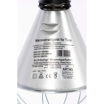 Die sechs Lüftungsschlitze im Alu-Schirm der Lampe sorgen für eine bessere Luftzirkulation, wodurch eine längere Lebensdauer der Infrarot-Lampe gewährleistet ist.