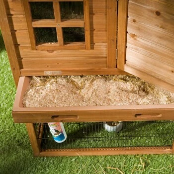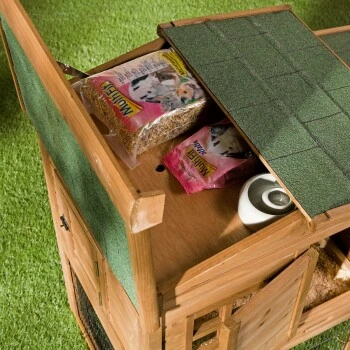 Der Stall kann auch für die Geflügelhaltung genutzt werden. Das passende Kerbl Legenest (Art.Nr.:1194402) bietet einen Anbau und Sitzstangen.