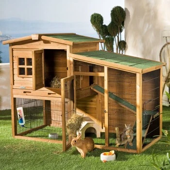 Einfach aufzubauen. Idealerweise sollte das Freilaufgehege unter einem Vordach an der Wetter abgewandten Seite stehen.