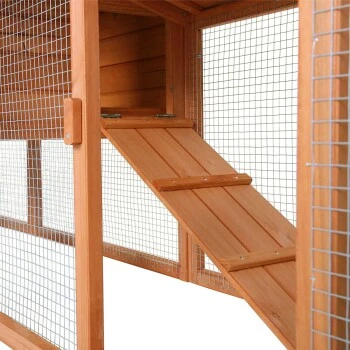 - SPECIALS. Eine Lauframpe gewährt den Tieren den Zugang zur 2. Etage, die aufgrund des Sichtschutzes einen idealen Rückzugsort bietet. Im unteren Bereich können die Tiere dank des offenen Bodens auf dem Rasen spielen und grasen.