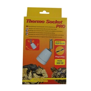 Der Thermo Socket PRO ist auch ideal für die Verwendung mit den Lucky Reptile Bright Sun Lampen, da die Steckverbindung kompatibel zu den Bright Control Vorschaltgeräten ist und diese einfach dazwischen geschaltet werden können. Die Silikonzuleitung ermöglicht außerdem den Einsatz von Lampen bis 300W, inklusive der Osram Vitalux. Natürlich sind die Thermo Socket PRO auch kompatibel zu den Reflektorsets.