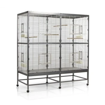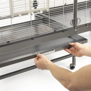Clevere Detaillösungen, wie zum Beispiel stabile Rollfüße, die Schutzklappe vor der Schublade, den Acryl-Schmutzschutz sowie die vier Vordertüren, die sich zu Anflugklappen wandeln, zeichnen die Paradiso 150 aus. Zusätzlich verfügt die Paradiso 150 über vier Seitentürchen zum Anbringen von Nistkasten oder Badehaus.