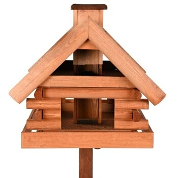 Das Vogelhaus ist witterungsbeständig und für die ganzjährige Aufstellung geeignet. Der erweiterte Dachüberstand schützt das Vogelfutter vor Wettereinflüssen und Feuchtigkeit.