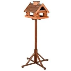 Der Vierfuß-Stand garantiert einen stabilen Halt. Das Vogelhaus ist aus FSC-zertifiziertem Kifernholz und rostfreiem Metall hergestellt.