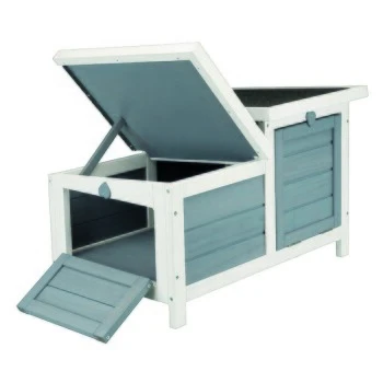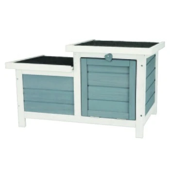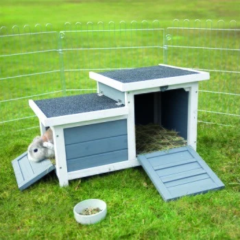 Das Kleintierhaus von Trixie ist dank des lasiertem Kiefernholz wetterfest. Das Dach ist mit besandeter Dachpappe bedeckt und lässt sich zugleich bequem öffnen. Es eignet sich optimal zur Aufstellung in verschiedenen Freilaufgehegen. Alle Türklappen können separat verschlossen werden. Die Beine schützen vor Bodenfeuchte sowie –kälte und sorgen gleichzeitig für eine gute Luftzirkulation unterhalb des Hauses. Die beiden Ein- bzw. Ausgänge garantieren eine tiergerechte Haltung.
